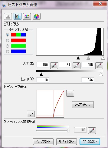 これのどこをいじるかですがヒストグラム調整がミソになってきます